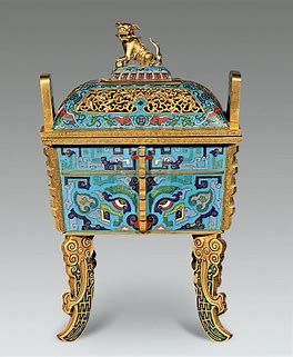 清代该工艺被纳入宫廷体系,康熙时期造办处专司皇家器物,乾隆时期发展为帝王专属礼器。其制作需将铜丝掐成图案后填釉烧制,与清代瓷胎画珐琅(珐琅彩瓷)的素胎二次加工工艺形成区别。成品多饰鎏金与宝石镶嵌,纹饰遵循严格等级制度,集中体现宫廷审美特征。