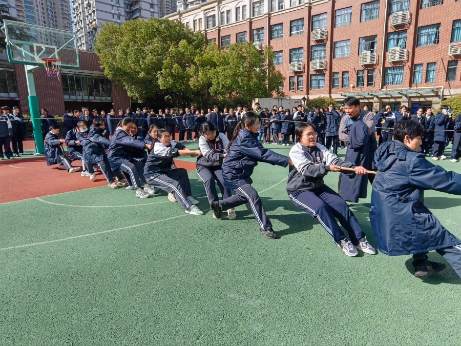 第一局,对方的力气远超我们的预料,麻绳被迅速拽过中线,我们输得有些狼狈。短暂调整战术时,班长吼着让我们稳住节奏,跟着口号一起发力。第二局的哨声刚落,我们齐声喊着“一二、一二”,脚下死死钉在地上,手臂绷成了笔直的硬弓。看着红绸一点点向我们这边挪动,全班的欢呼几乎要掀翻操场,这一局,我们赢了!