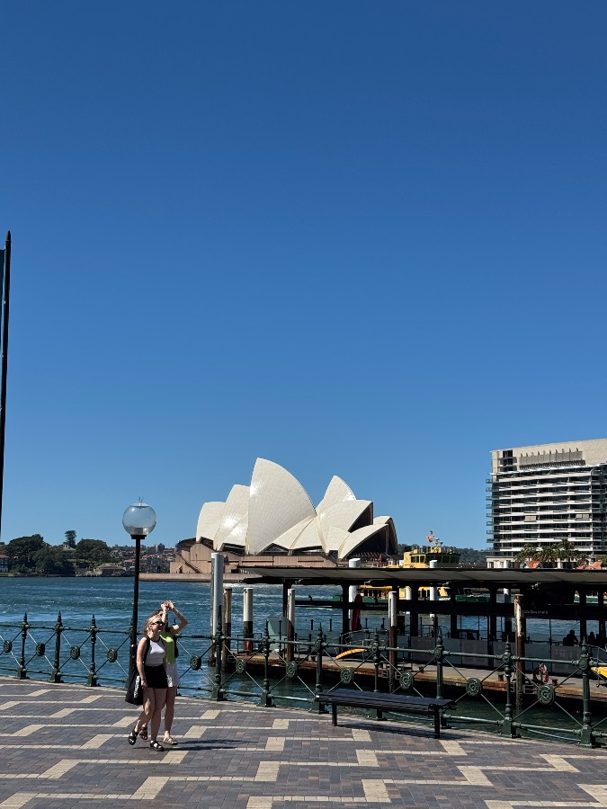 澄澈如洗的湛蓝天幕,将悉尼歌剧院的白帆衬得愈发圣洁。阳光毫无保留地倾洒下来,在砖石铺就的步道上投下清晰的光影,连海风都裹着暖融融的暖意,拂过港面漾起细碎的波光。
