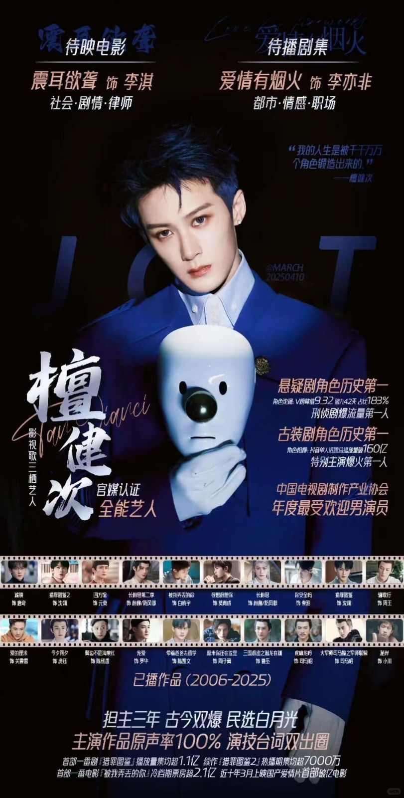 他出道多年,始终保持着对舞台与表演的敬畏之心。无论是唱歌跳舞,还是塑造影视角色,他都全力以赴,从不敷衍。为了演好一个角色,他愿意花大量时间钻研剧本、体验生活;面对压力与质疑,他不抱怨、不气馁,默默提升自己,用一部部扎实的作品证明实力。低调谦逊、踏实努力、自律坚持,这些品质在他身上体现得淋漓尽致。