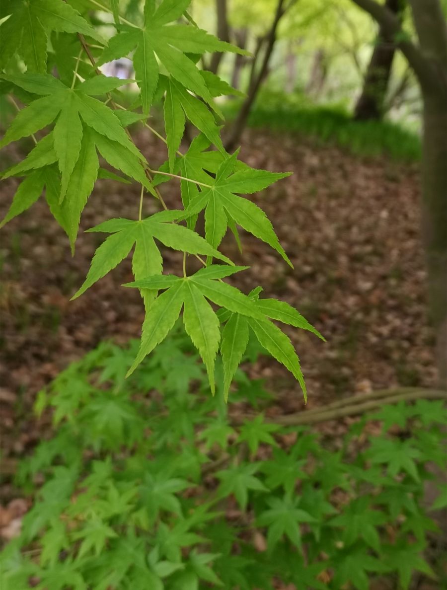 春日林间,风还带着些许柔意,枝头的青枫早已抽出了新叶。掌状的叶片舒展着,像一